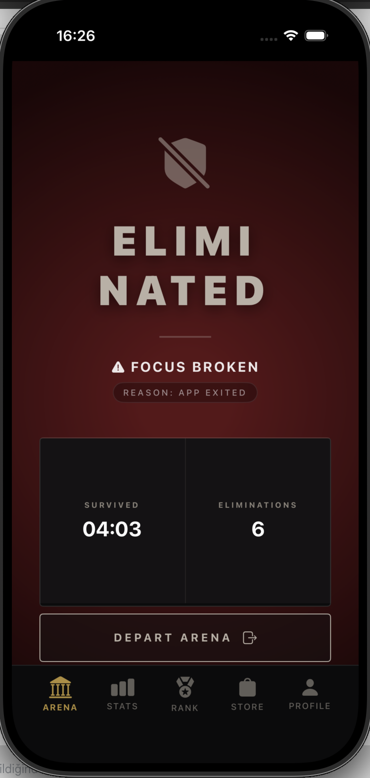"Productivity as a Battle Royale. If I leave the app, I die. Join me: focusarena.com"